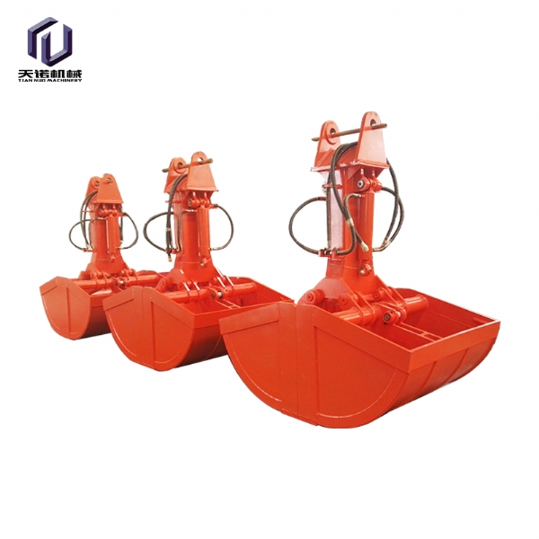 挖掘機(jī)貝型斗(也叫抓斗,哈殼斗)分為液壓回轉(zhuǎn)和不帶液壓回轉(zhuǎn)兩種。不帶液壓回轉(zhuǎn)的貝型斗采用挖掘機(jī)鏟斗油缸的油路,不用另外添加液壓閥塊及管路;帶液壓回轉(zhuǎn)的貝型斗要添加一套液壓閥塊及管路來控制,油缸配置活塞保護(hù)裝置。
